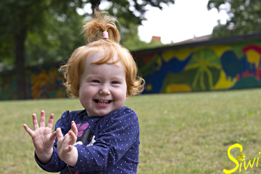Spaß hat das kleine Mädchen beim Ausflug mit der Tagesmutter.